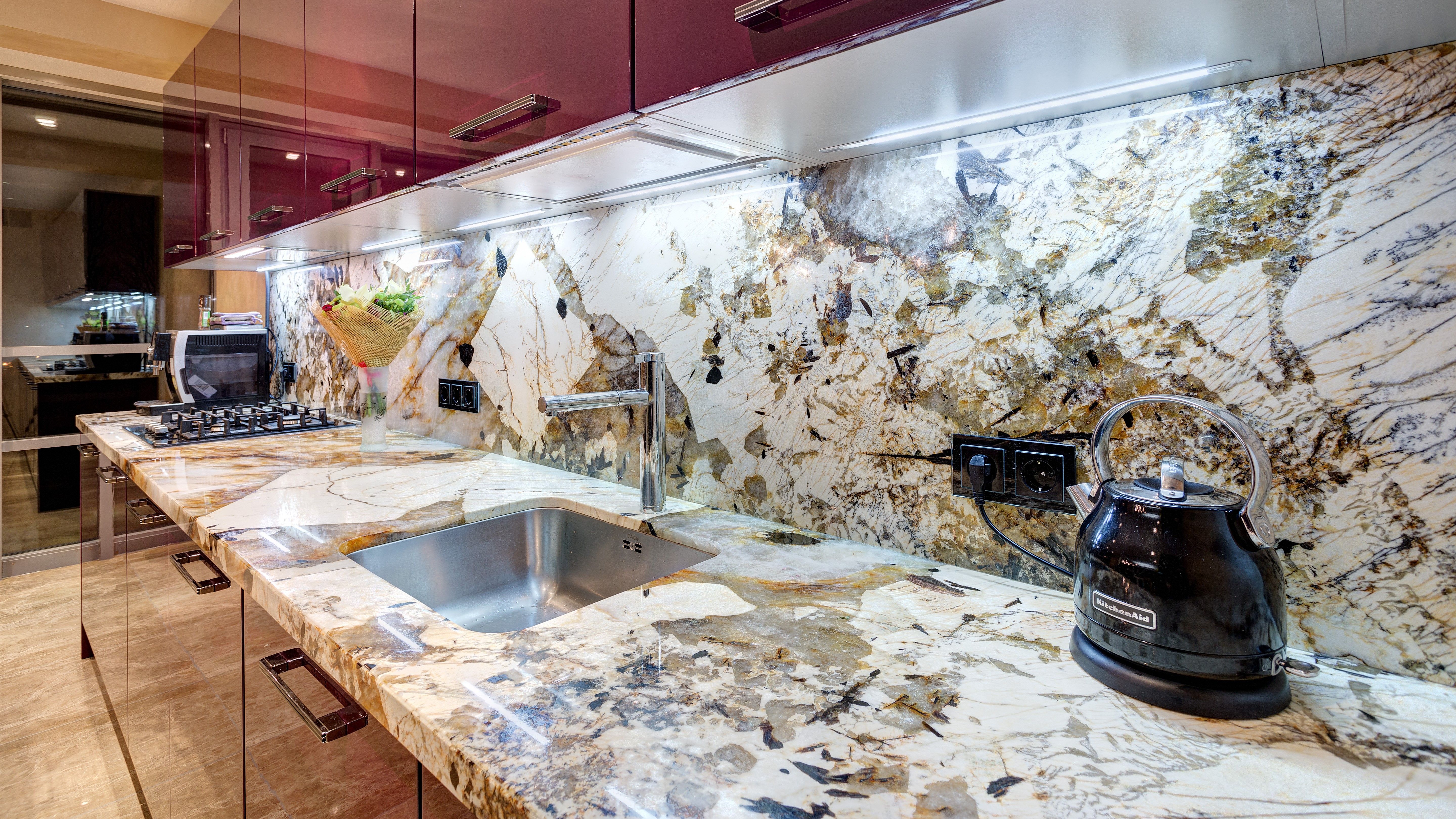 Столешница из натурального камня создаёт ощущение особой роскоши и великолепия в интерьере.